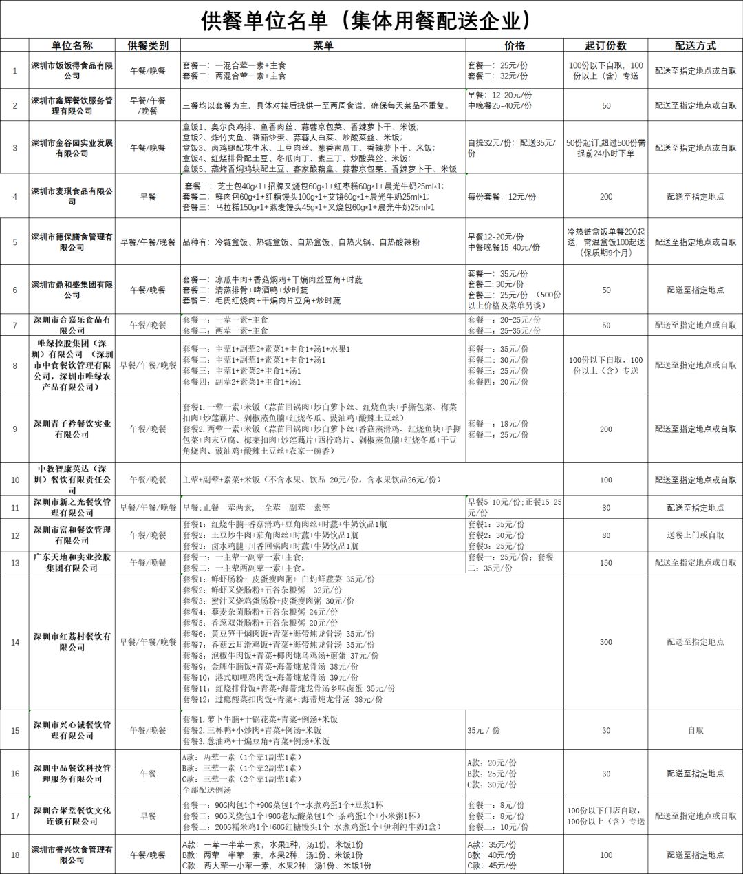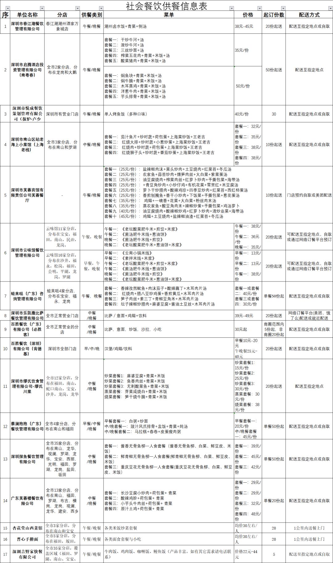 为了保障复工后集体用餐的安全,深圳市市场监督管理局协调了安全的订餐渠道,目前已经有79家供餐单位!