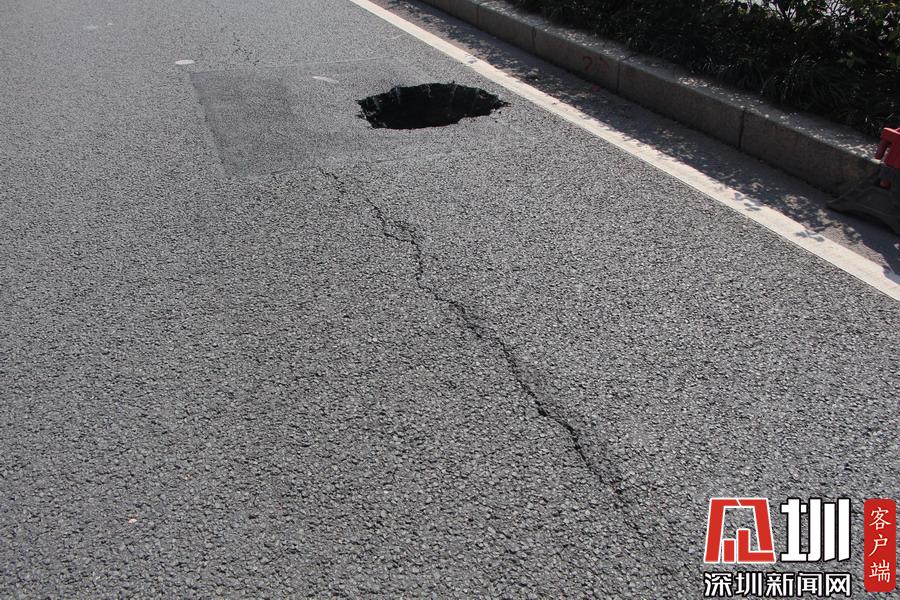 深圳市民广场前一辅路惊现直径一米坑 有关部门:正加紧修复