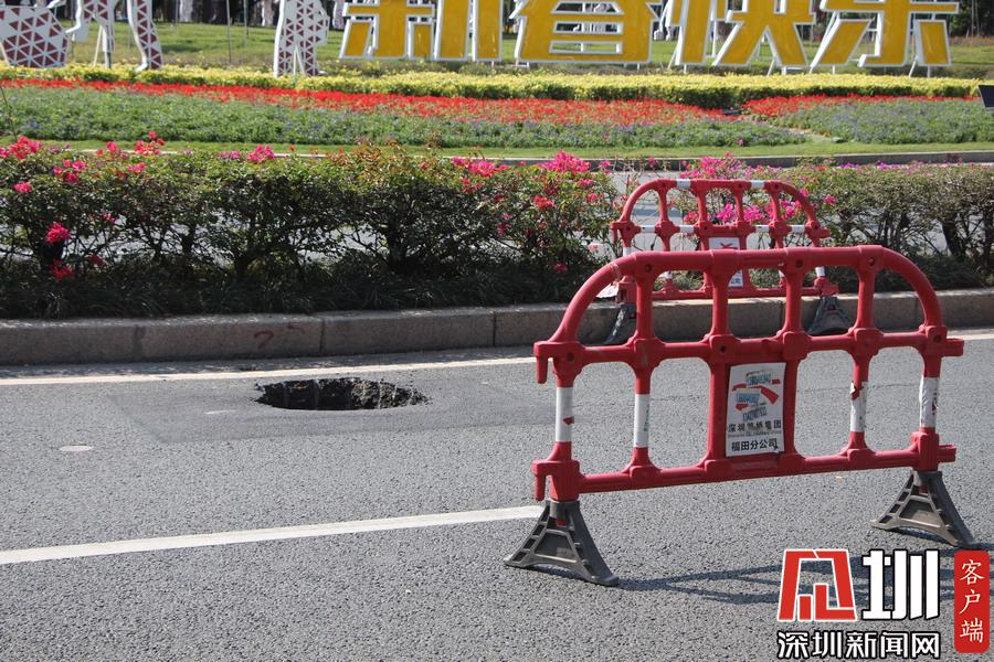 深圳市民广场前一辅路惊现直径一米坑 有关部门:正加紧修复