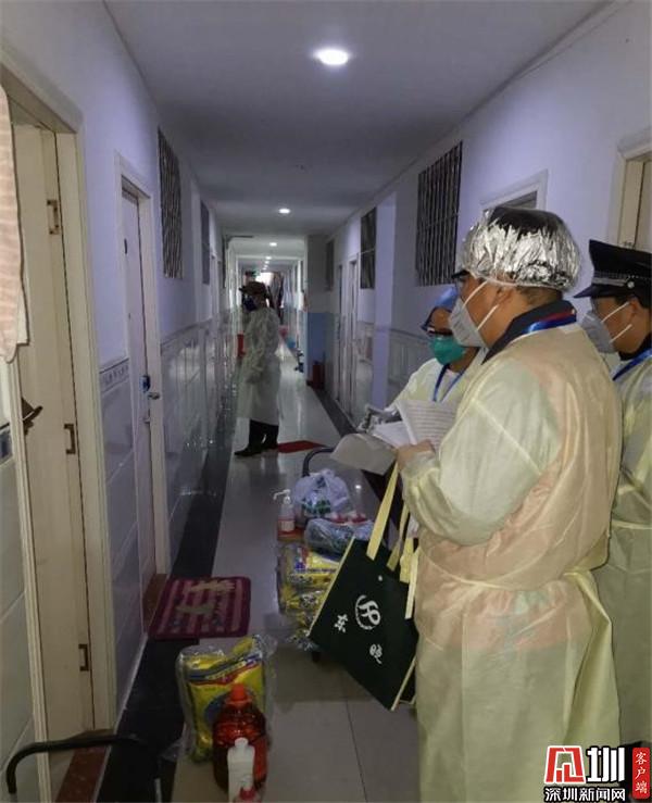 2月16日,工作人员上门慰问居民并给他们分发消杀用品和生活用品。