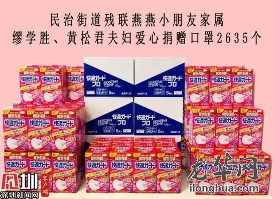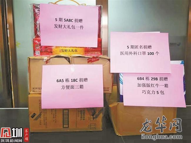 2月8日,民治残联燕燕小朋友的家属缪学胜、黄松君夫妇爱心捐赠口罩约2600个。2月15日,樟坑社区一便利店老板向卡点一线工作人员赠送矿泉水20箱、方便面10箱。民治辖区有约720个体温监测点,对体温检测仪的需求量比较大。不少居民纷纷拿出捐出自己家中的测温仪,一夜之间就募集到测温仪180个。在莱蒙水榭春天小区,物业承担测体温、送蔬菜、清垃圾、环境消杀等很多工作,周到的防疫工作业主们看在眼里,暖在心里。小区业主们自发组织捐款,筹集近20万元物资,用于物业一线人员的补贴发放和防疫物资购买。