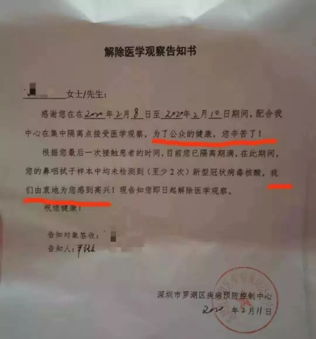 2 月 11 日解除隔离: