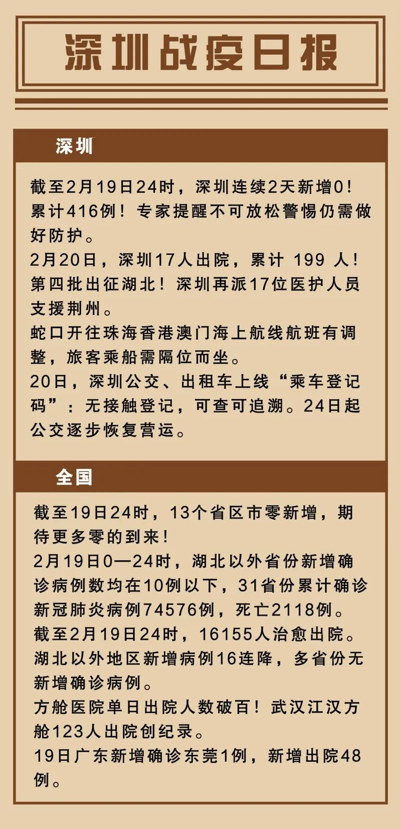 ①2月20日下午,经专家组会诊,深圳再有17名新冠肺炎确诊患者出院,累计达199人,连续18天有人出院。