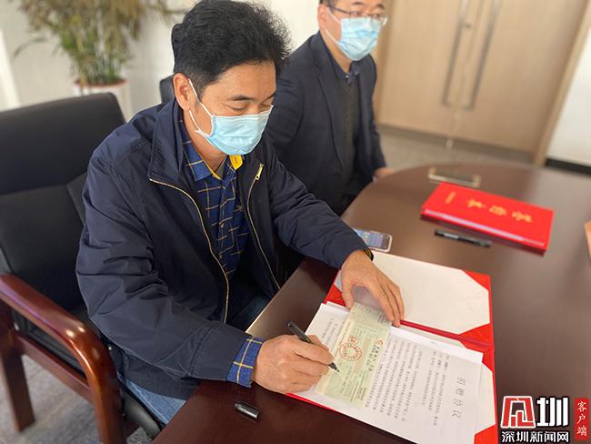 2月20日,捐赠仪式在南山文化馆举行,潘玉池代表捐赠方向南山区口罩生产企业深圳市新纶科技股份有限公司(简称“新纶科技”)订购医用防护口罩10万只,现场交付采购口罩的现金支票并签约。据了解,这批口罩将在本月底到货,全数捐赠给南山区文化产业园区和文体场馆,用于帮助园区(场馆)入驻企业复产复工。
