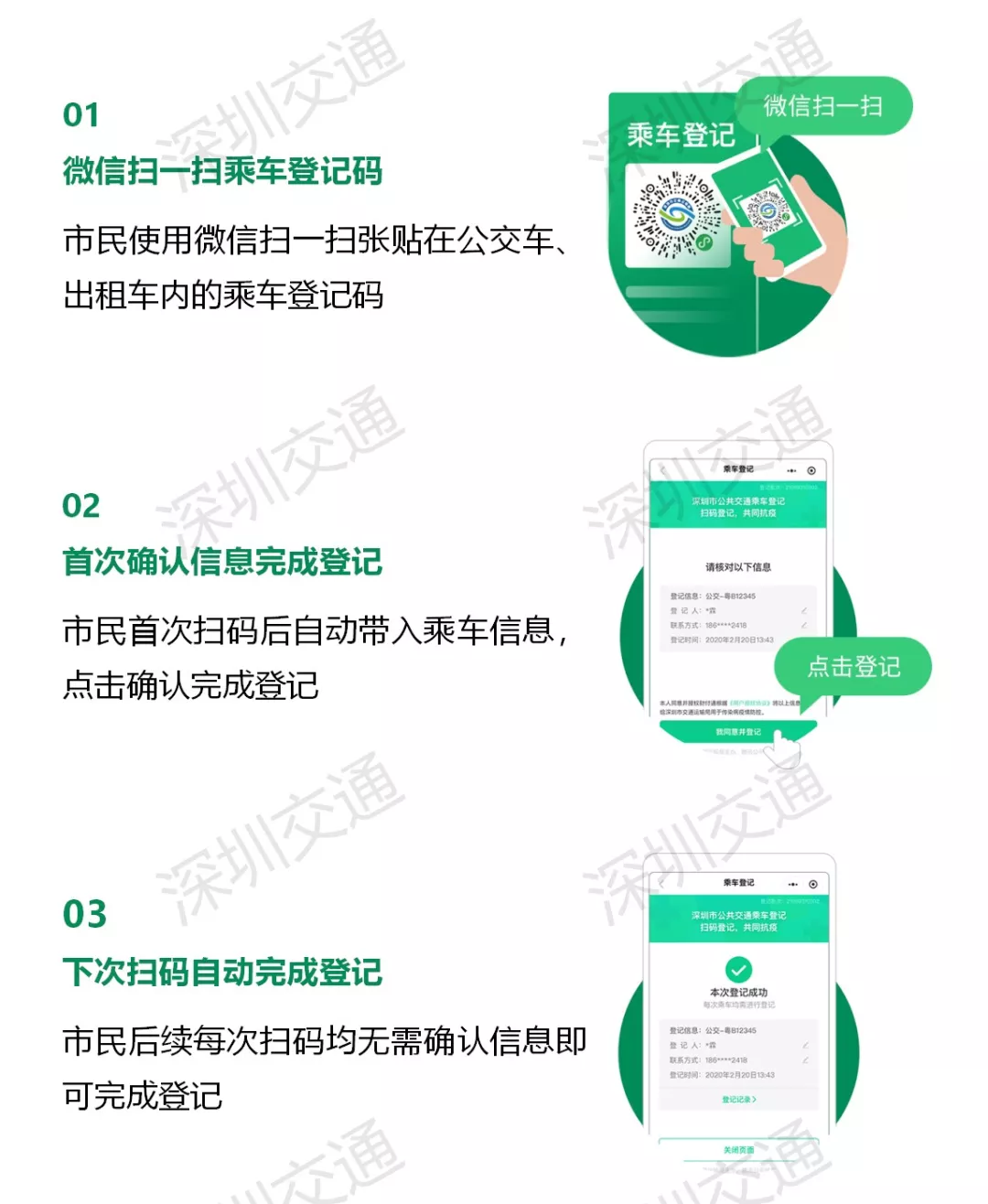 一、市民乘车时请主动按照操作指引,通过车辆上的乘车登记二维码登记乘车信息。