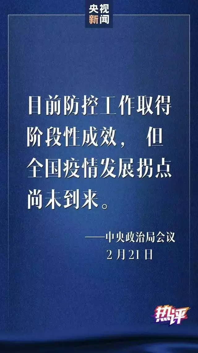 2月21日召开的中央政治局会议作出冷静判断——虽然疫情防控工作取得阶段性成效,但“全国疫情发展拐点尚未到来”。