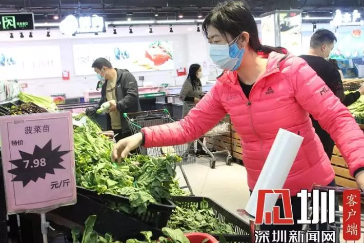 超市也开始慢慢恢复人气,顾客们均能够按照相关要求遵守制度,有序入场采购,遇到选菜、称菜人多时,市民也会比较自觉,与他人保持一定距离。