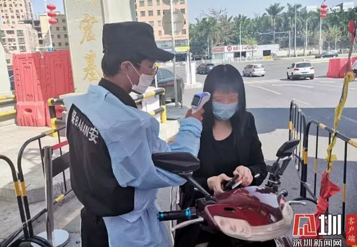市民进入社区需测量体温。路上的车辆较前几日渐渐增多。