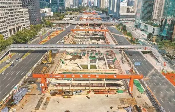 岗厦北综合交通枢纽建设工地全景。图自:深圳特区报