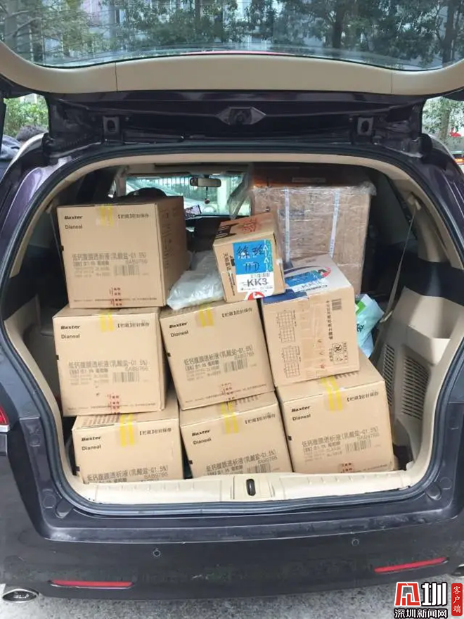 女孩一个月需要的透析药物整整十箱,接近300公斤。即使是放在推车上,也需要阳薇与一名男同事一起发力,才推得动。阳薇需要先开车去医院取药,回来再把药物一箱一箱地搬上11楼,送到女孩家门口。即使遇上阴冷潮湿的雨天,也从未间断。