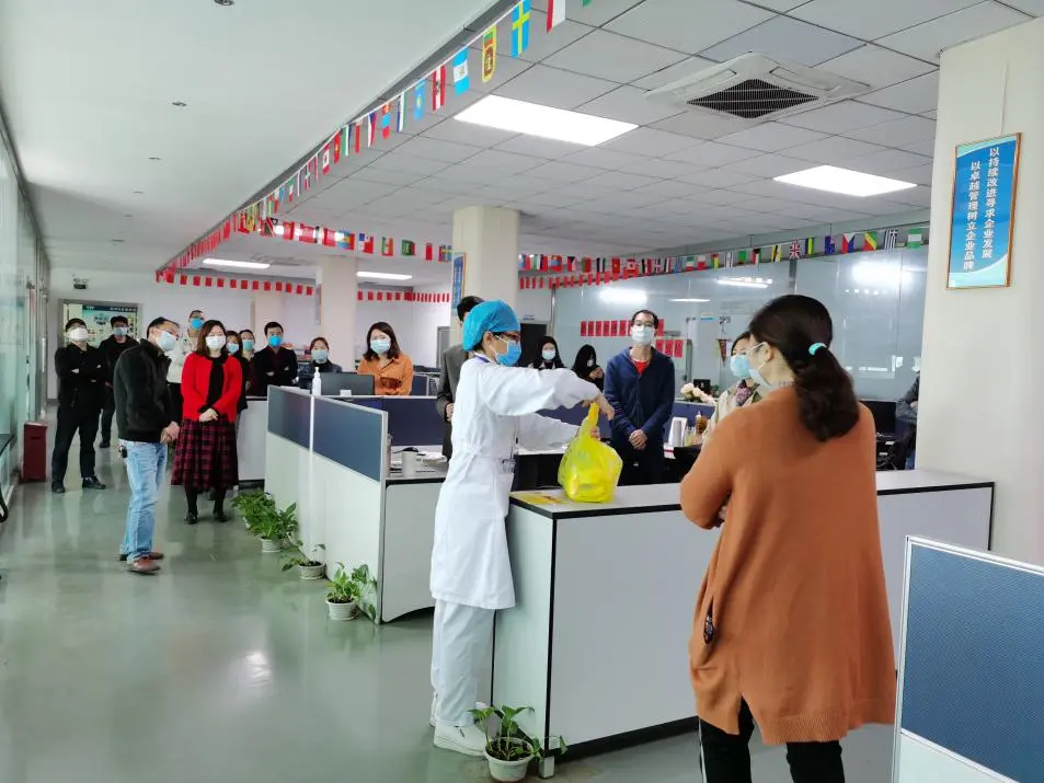 2月22日,同富康社康中心医务人员来到驻美耐思公司进行复工复产防疫培训。
