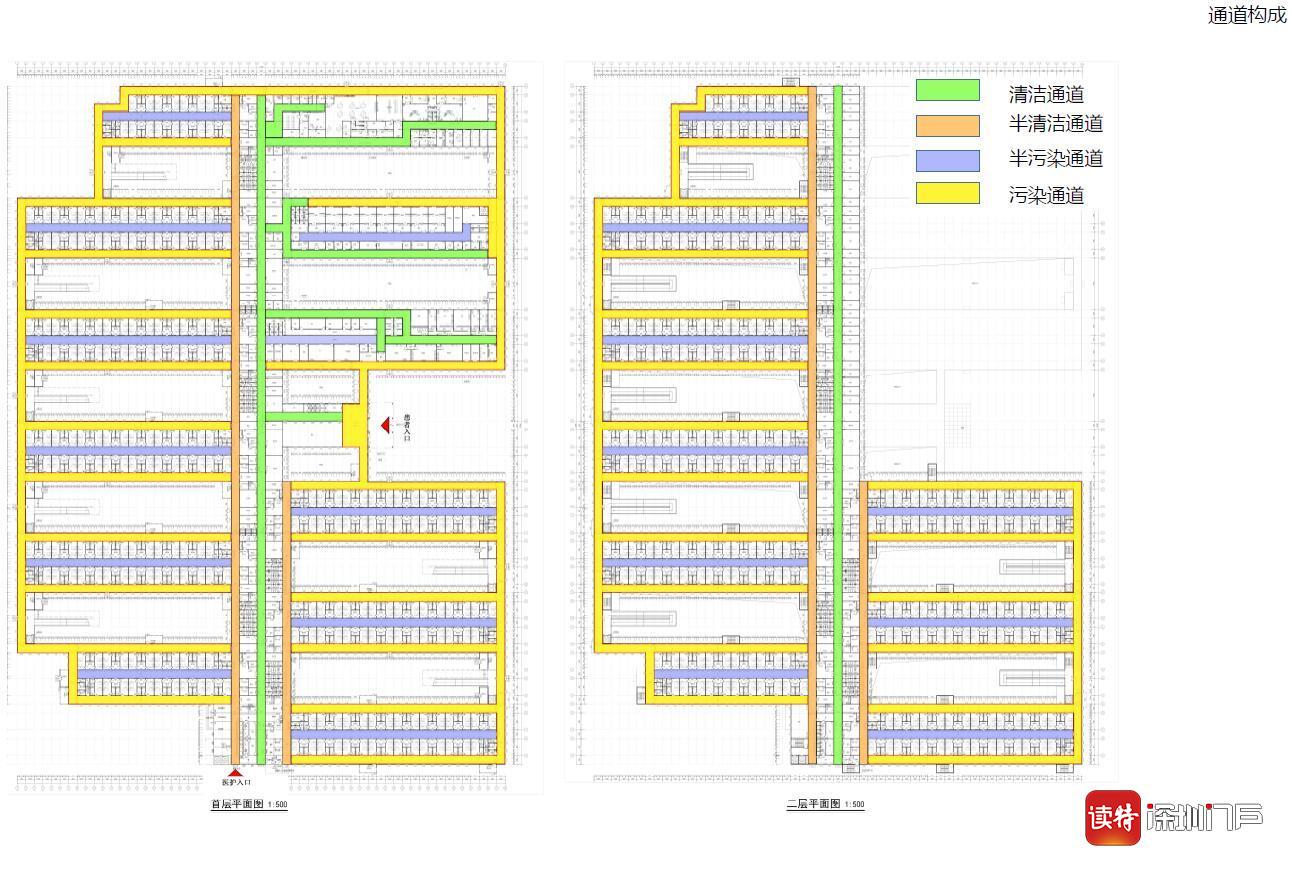 据了解,应急医院采用更加严格的“四区三通道”布局,分为清洁区、半清洁区、半污染区、污染区、清洁通道、半清洁通道、污染通道。