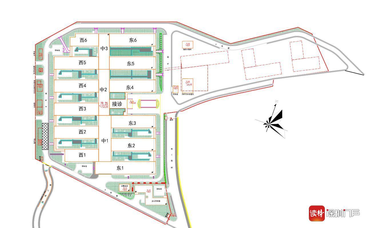据悉,应急医院位于深圳市龙岗区水官高速以南,南邻厦深高铁线部分轨道桥,地处深圳“三院”现址旁,紧邻李朗圣山公园。