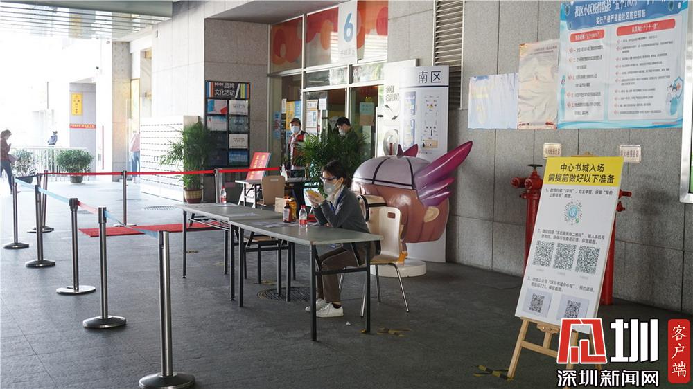 深圳中心书城已开放,进门要进行严格的登记和检查。