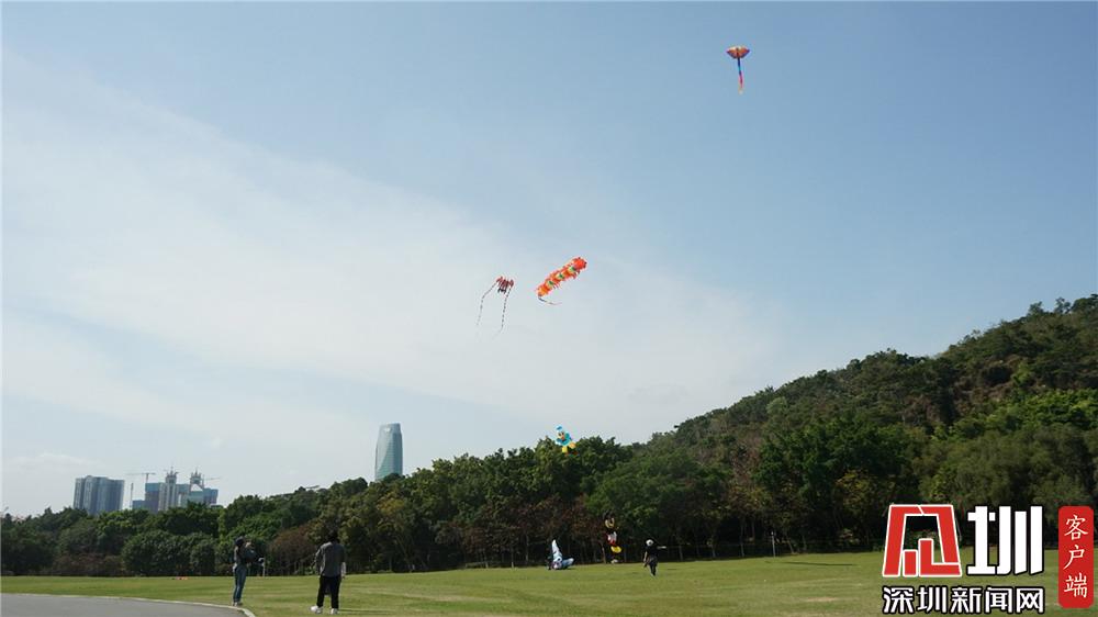 莲花山公园风筝广场上,不少市民在此放飞风筝。