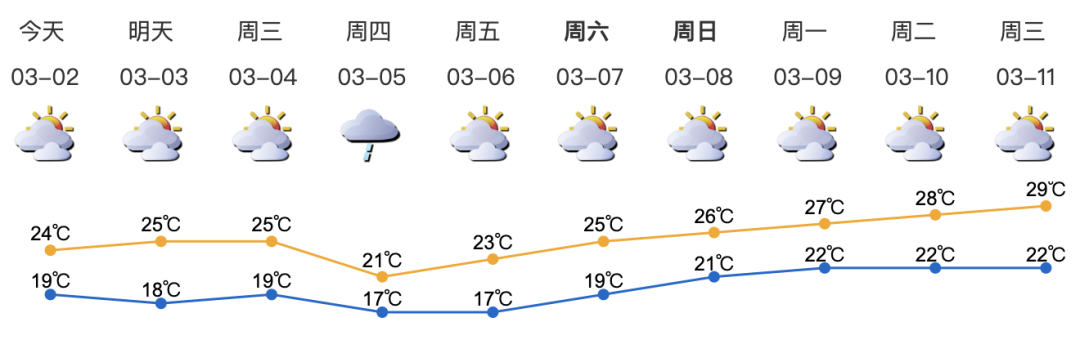 我市多云间阴天;气温19-24℃;偏东风3-4级,沿海、海区和高地阵风6-7级;相对湿度60%-90%。