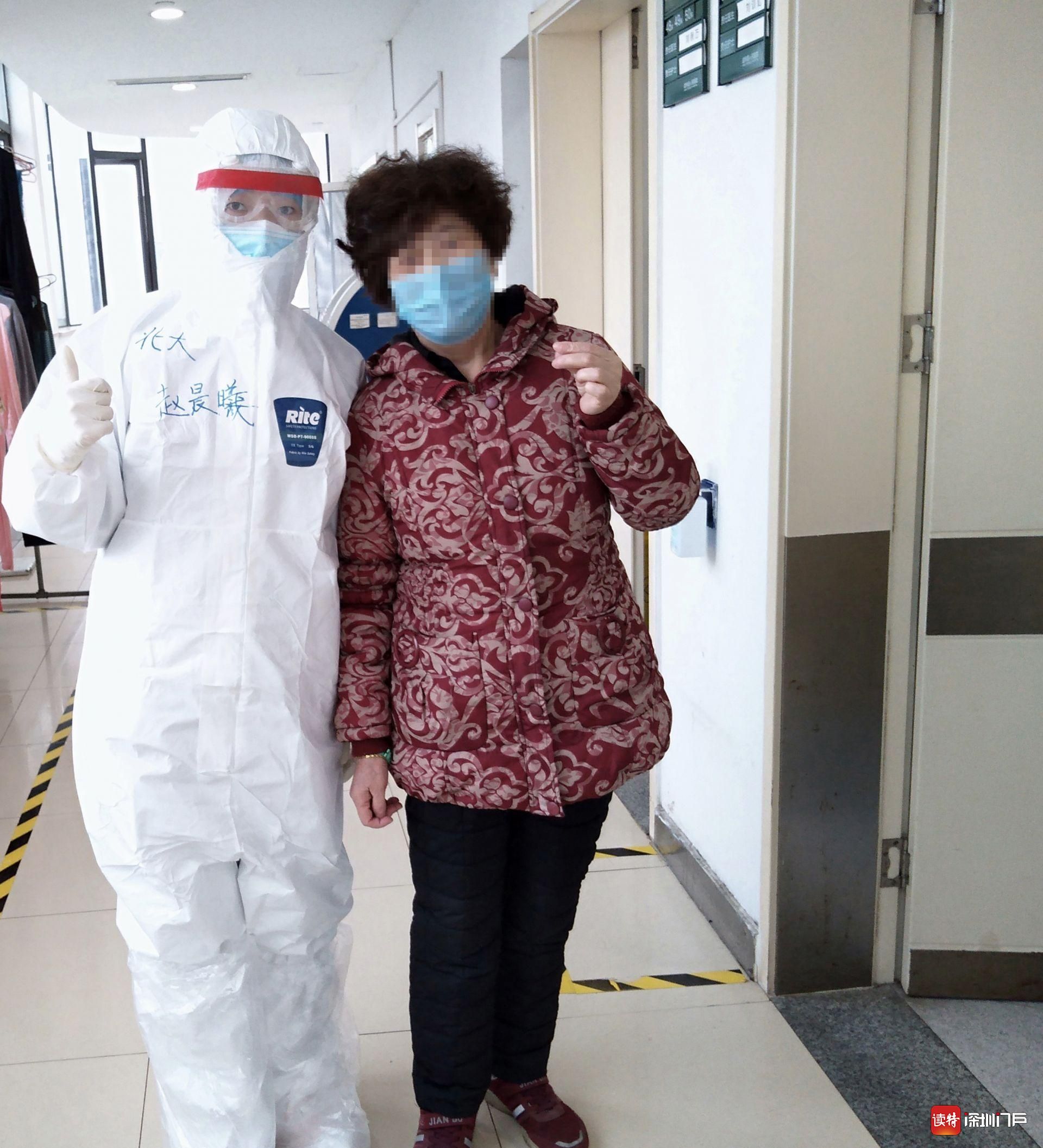张阿姨和深圳医疗队队员赵晨曦在病区内合影。深圳医疗队供图