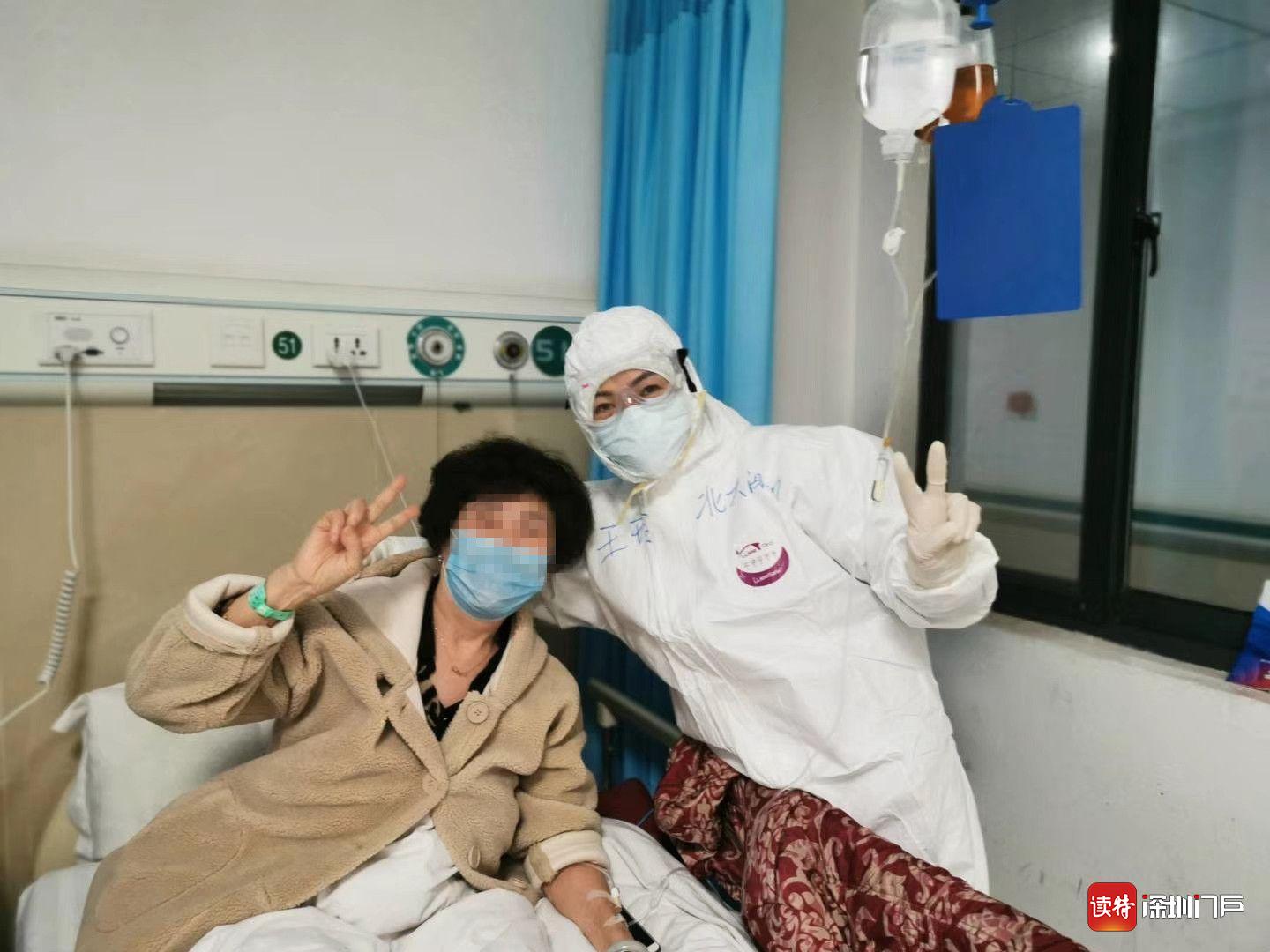 说完这句话,张阿姨自己的眼眶也红了。王玲紧紧握住阿姨的手说:“您一定很快康复的。等您好了,我们一起回去,回我们的深圳!”阿姨轻轻搂住王玲:“谢谢你们,深圳的白衣战士们!”