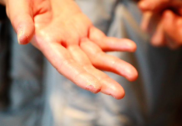 由于长期近距离接触患者,徐平每天不得不频繁洗手、高频率使用医用酒精进行手部消毒。这样做的结果,就是手部皮肤干燥粗糙、皲裂。但她没有办法让自己停下来,只要疫情还没有结束,她就不可能停下来。