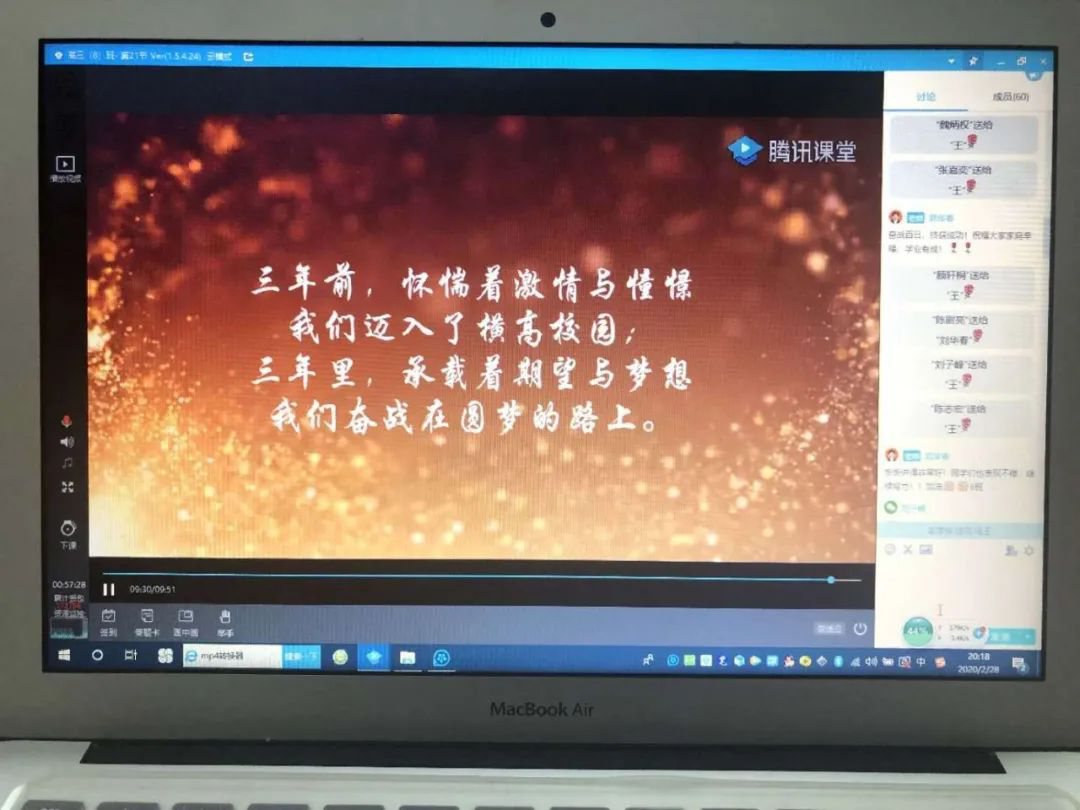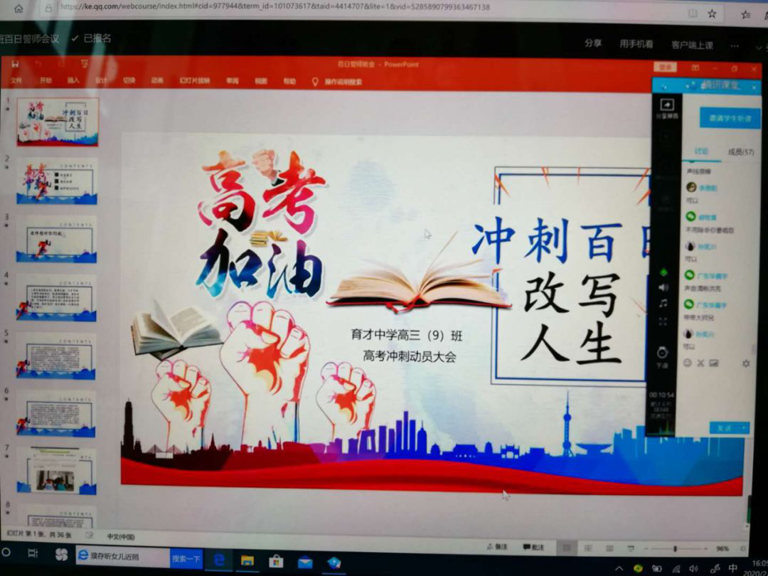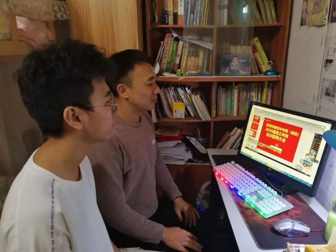 2月28日,横岗高级中学2020届高三全体师生利用腾讯课堂召开以班级为单位的网上“高考百日誓师大会”。各班精心制作PPT,提前录制老师、家长、同学的祝福小视频,科任老师、学生家长、学生代表连麦鼓励,同学们最后对着电子屏幕高喊百日誓词同时下定决心,为自己的梦想,刻苦拼搏,永不言悔。网上“百日誓师”豪情满怀、温情涌动、感人至深。