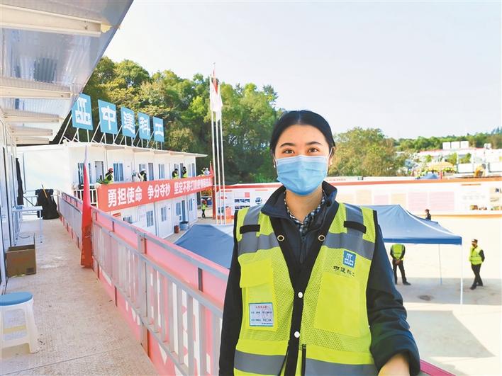 在最近落成的深圳三院应急院区建设这场激动人心的大会战中,有不少女性员工活跃在施工一线岗位,被工友们亲切地称为“工地上的铿锵玫瑰”。中建科工华南大区招采中心高级经理孔卉楠就是其中一员。