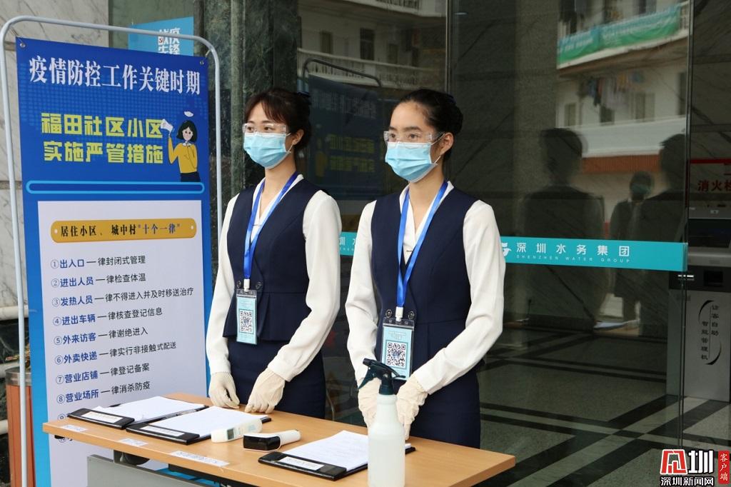 把好安全关。水务集团工作人员正对出入万德大厦的人进行登记和体温检测。