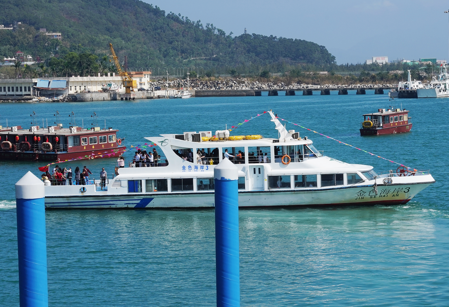 停靠在盐田金色海岸码头处运营游船。韦建诚摄