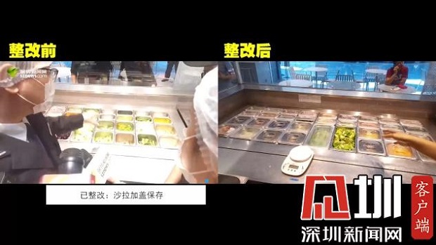 后续进展:在回访中,记者发现好色派沙拉存在的问题已得到整改。好色派沙拉营运总监郑总监向记者介绍,公司十分重视在检查中发现的问题,也发现有很多细节没有做到位,目前公司已对旗下门店进行自查,并印发食品安全量化等级A级的标准给各门店,要求已有的门店向A级标准进行调整,新开业的门店按照A级标准经营,力求为市民提供安全放心的食品。
