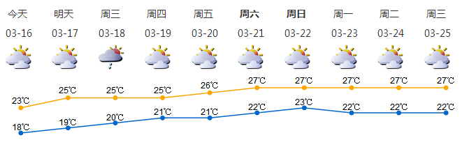 多云;气温18-23℃;东风3级,阵风6级;相对湿度50%-80%。