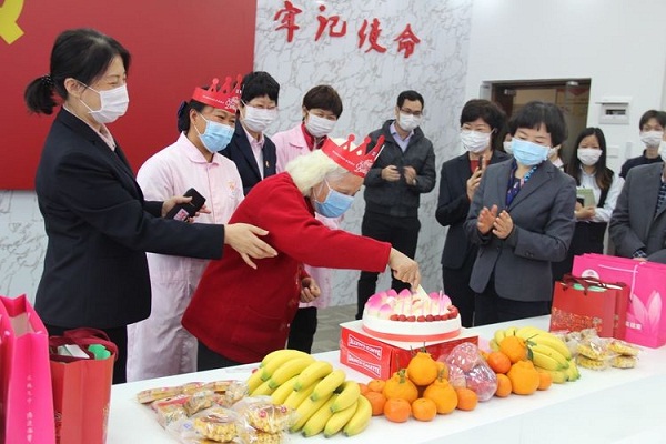 3月11日上午,一场别开生面的集体“云”生日会在福利中心老人颐养院正式展开,活动以老人颐养院党建室为主会场,老人生活区、员工工作区、老人家里为分会场,通过网络视频的方式同时举行。其中,百岁寿星蔡奶奶的家属,也参与了本次生日会。尽管缺少了拥抱和亲吻,特殊时期里这特别的“云”生日会,却比以往带来了更多的温暖与感动。