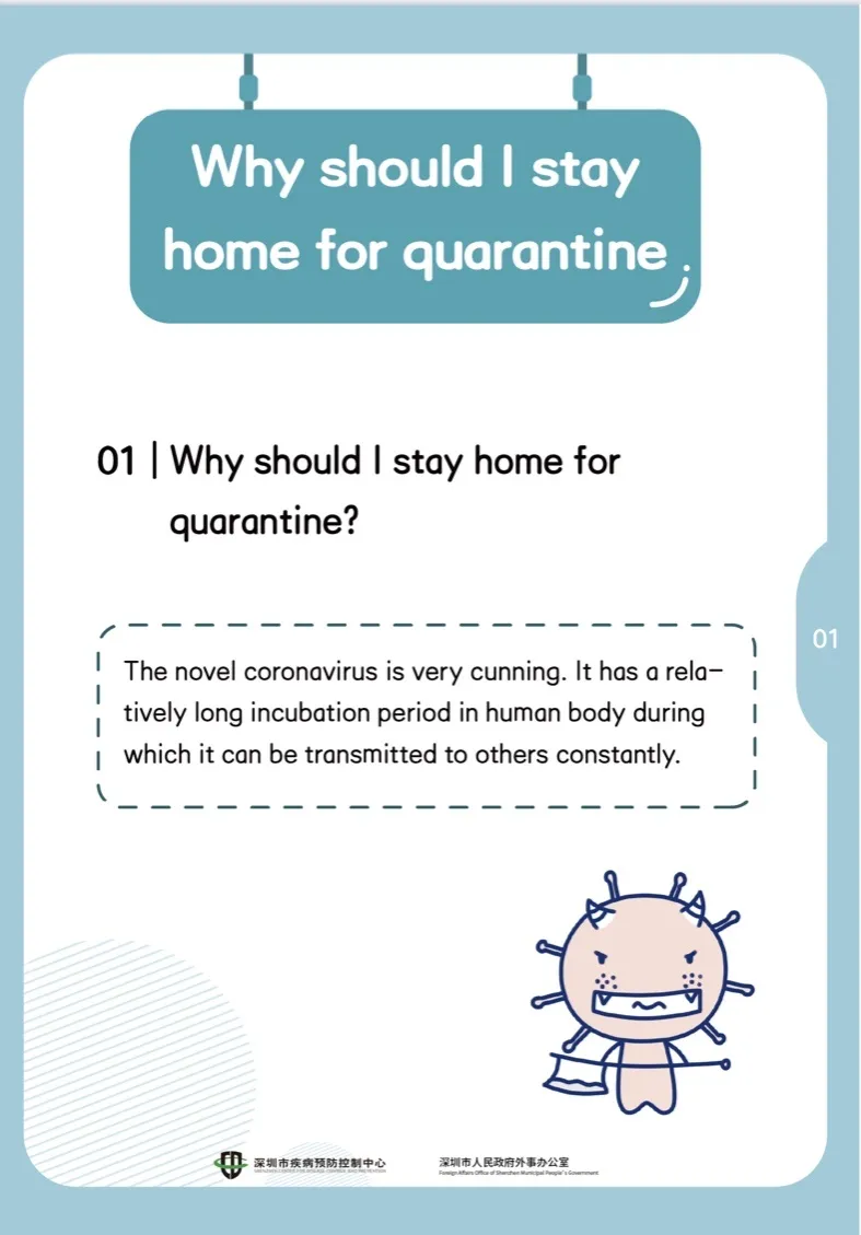 因此,为了您和家人健康,从疫情高发重点地区来深返深后,应当进行14天居家隔离,以确认没有感染病毒。在这非常时期,做好居家隔离既是对您自己和家人最好的保护,也是为疫情早日结束做贡献。