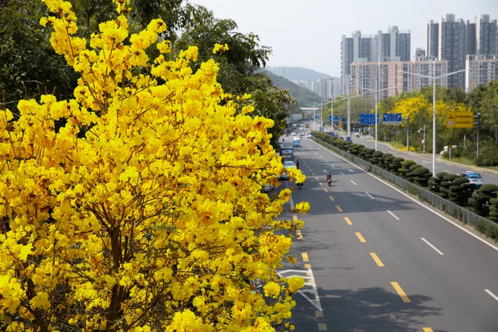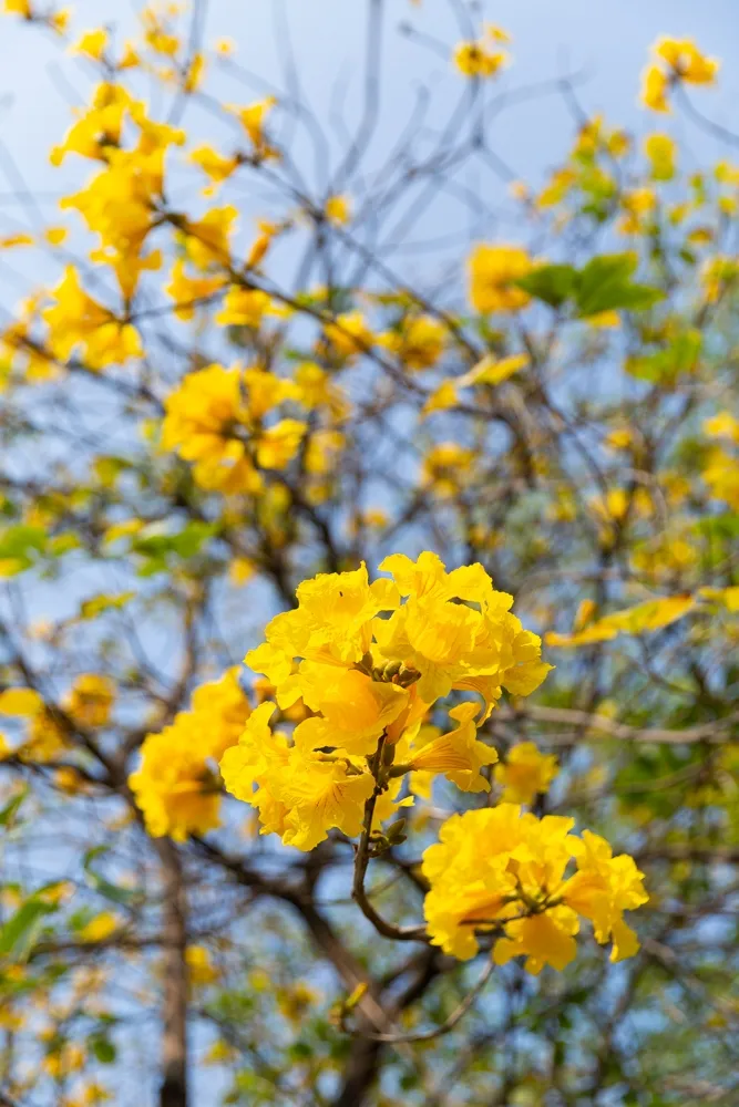 黄花风铃木迎着和煦的春风惊艳绽放,