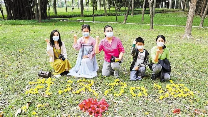摄影爱好者李女士,趁着百花盛开的季节到公园摄影,见到小朋友正在用花瓣摆字,便上前助力。喜欢汉服文化的林小姐也一同上前,大家的踊跃参与感染了身为湖北人的记者,在众人的努力下,最终完成这幅“花字”,共同为武汉加油。