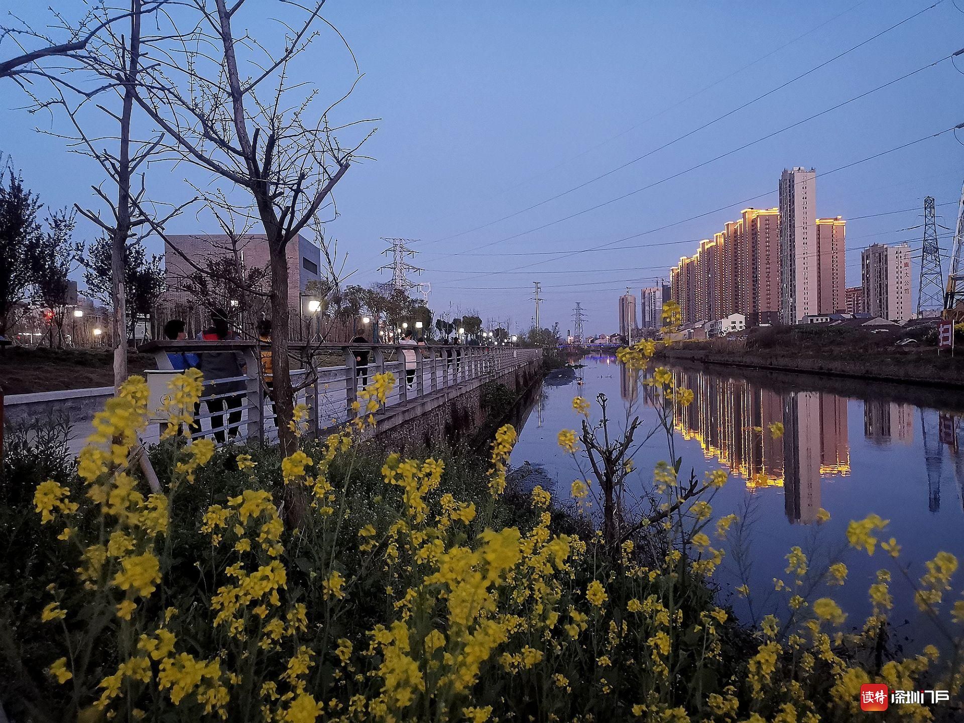 3月15日黄昏,城内湿地公园重新开放,监利人晚饭后出来散步。
