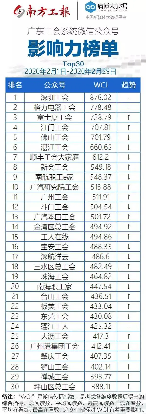 在大家的支持下,从去年3月开始,"深圳工会"连续12个月夺得广东工会系统微信公众号影响力榜单冠军!