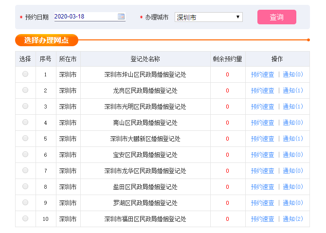 疫情防控期间,各区婚姻登记处取消现场取号,采用线上预约、提交材料及出示i深圳健康码、运营商行程证明短信才予以办理。