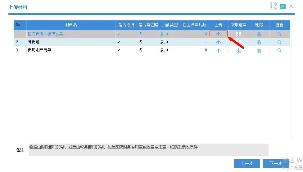 填写信息上传材料,如医疗费用收据或发票、身份证、费用明细清单等;