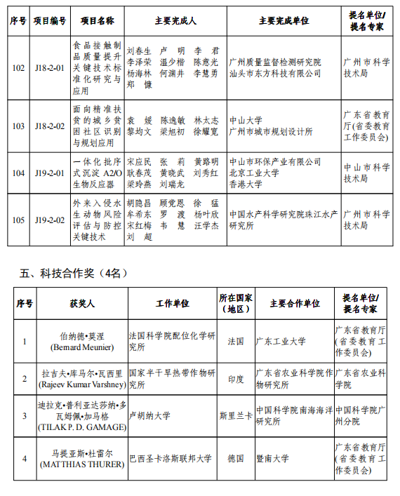 此外,授予伯纳德·莫涅、拉吉夫·库马尔·瓦西里、迪拉克·普利亚达莎纳·多瓦姆佩·加马格、马提亚斯·杜雷尔4名专家科技合作奖。