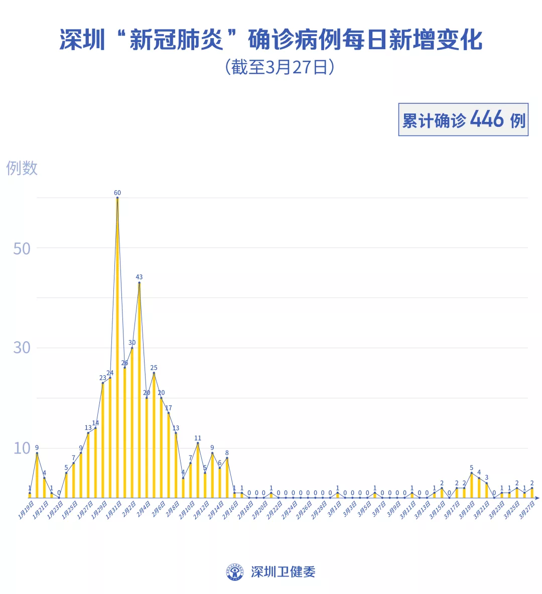 截至3月27日24时,深圳累计报告“新冠肺炎”病例446例。3月27日当天新增2例。