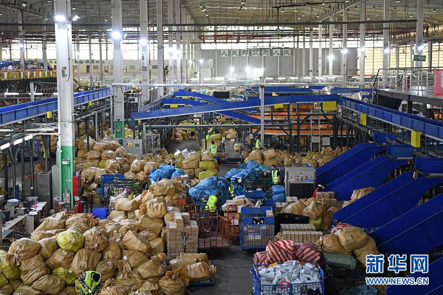 4月1日,在深圳邮件处理中心,工作人员在搬运邮件。据深圳市邮政管理局介绍,春节以来,深圳邮政快递业累计向湖北运送各类医疗、防疫物资超2万批次,累计为深圳市民配送防疫物资和生活必需品超过2.5亿件,为防疫物资和群众基本生活必需品送达提供了有力保障。新华社记者 梁旭 摄