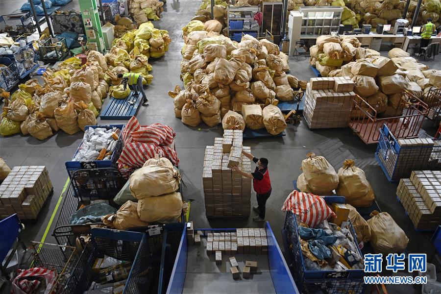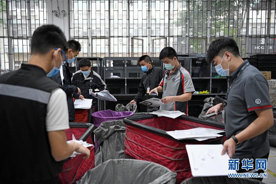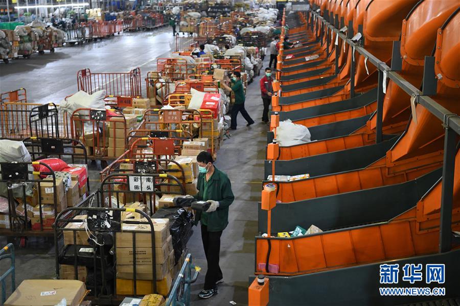 4月1日,在深圳邮件处理中心,工作人员在分拣邮件。据深圳市邮政管理局介绍,春节以来,深圳邮政快递业累计向湖北运送各类医疗、防疫物资超2万批次,累计为深圳市民配送防疫物资和生活必需品超过2.5亿件,为防疫物资和群众基本生活必需品送达提供了有力保障。新华社记者 梁旭 摄
