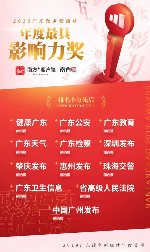 ▲2019年广东政务新媒体年度最具影响力获奖名单