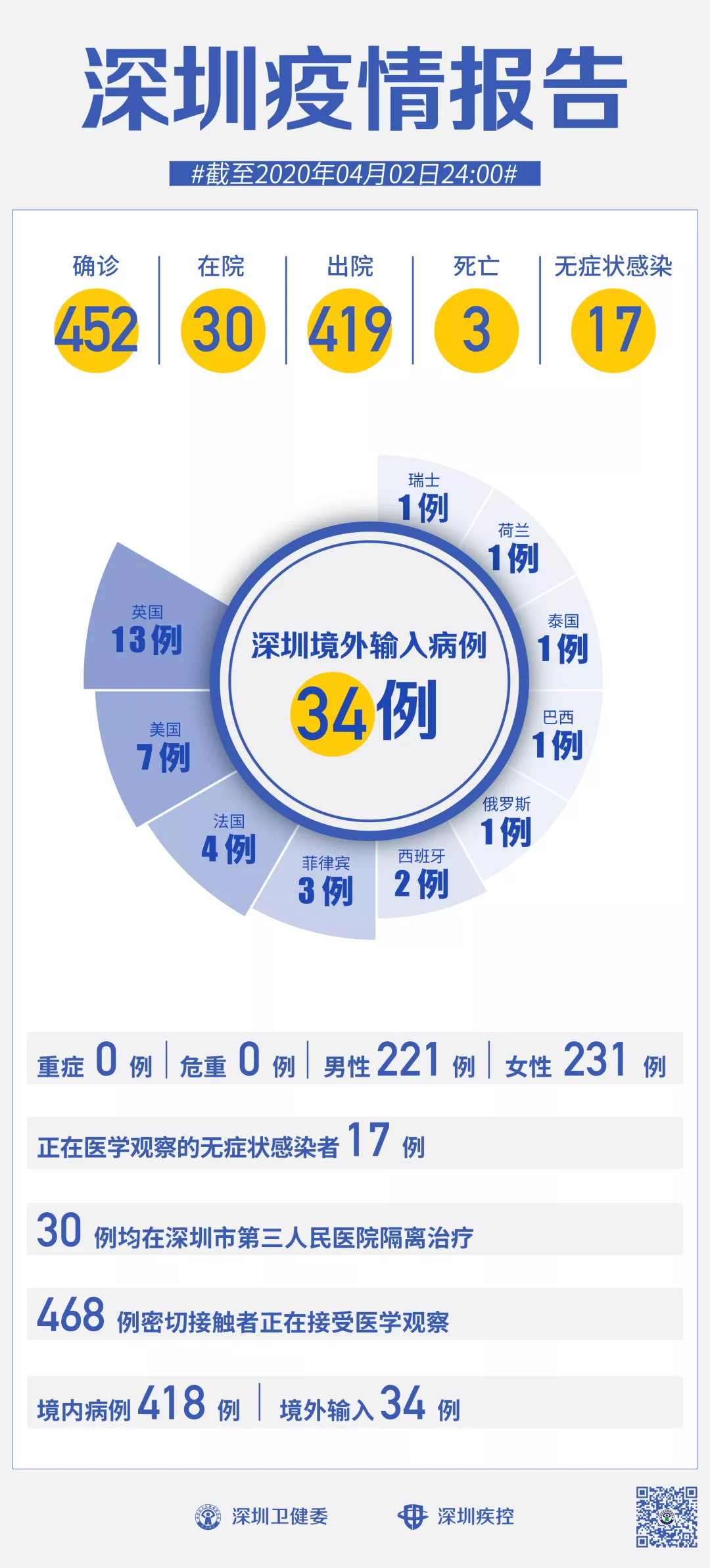 【境外输入】:当日新增1例,累计报告境外输入病例34例。