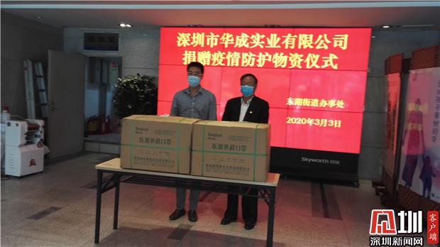 4月1日上午,马群涛代表委托深圳市恒得源环保新材料科技有限公司吕婷经理向东湖街道捐赠防护口罩一批次10000只,助力辖区疫情防护和企业复工复产。