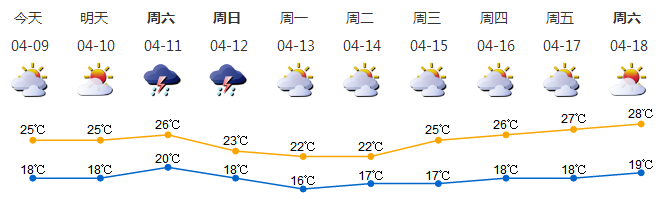 我市今天多云间晴天;气温18-25℃;偏东风2-3级;相对湿度50%-85%。