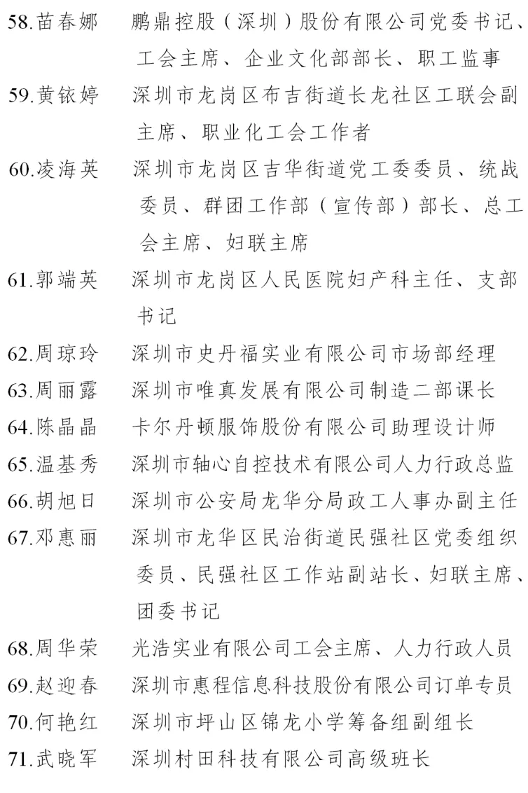 为表彰先进,树立典型,深圳市总工会决定,对深圳市朗诚科技股份有限公司数据应用部等40个先进集体、何方等104名先进个人予以通报表扬,分别授予深圳市五一巾帼标兵岗、深圳市五一巾帼标兵荣誉称号。