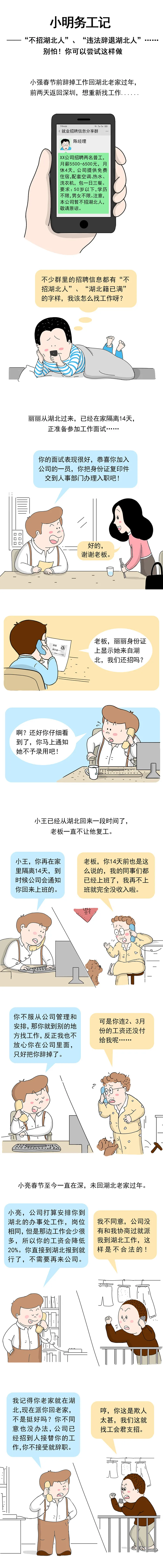目前,仍有小部分湖北职工在深务工时遭到了如漫画所描绘的就业歧视,我们要坚决反对就业环境中歧视湖北人的行为!