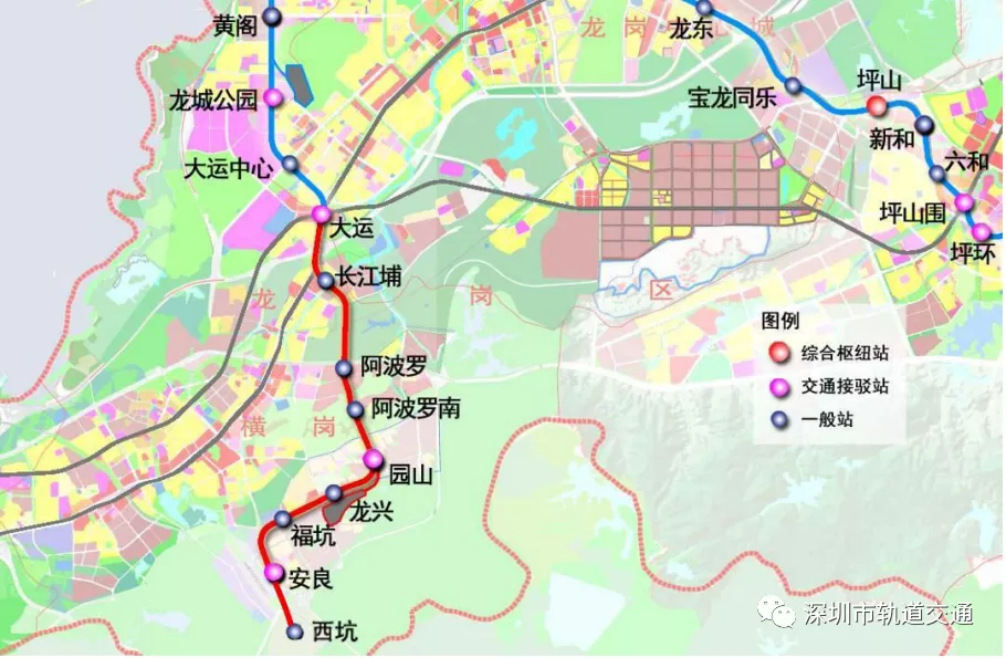 16号线二期工程自大运站至西坑站,线路长度9.53公里,为地下线,采用A型车6辆编组;建设工期5年。