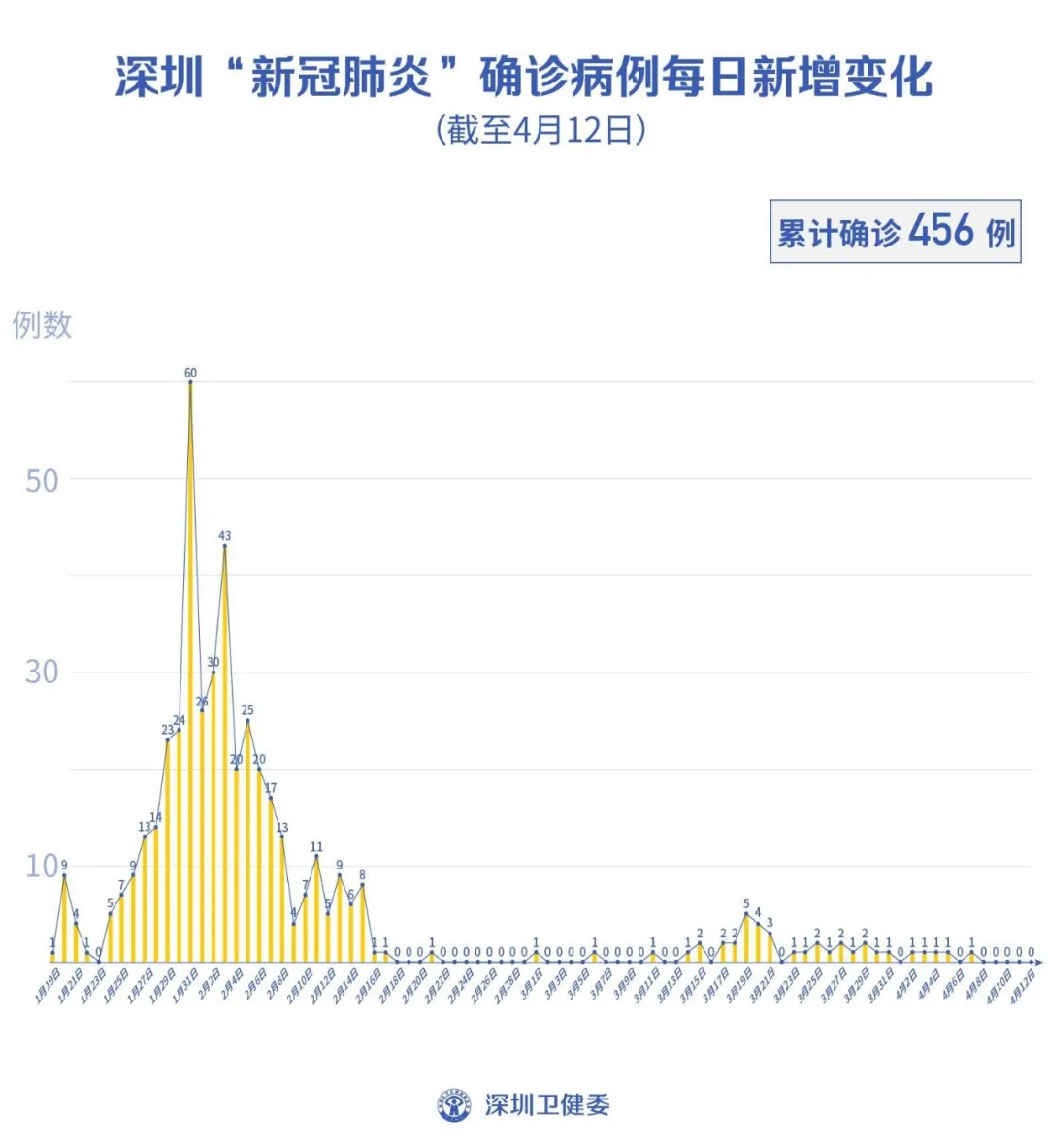 截至4月12日24时,深圳累计报告新冠肺炎病例456例。4月12日当天新增无症状感染者1例。