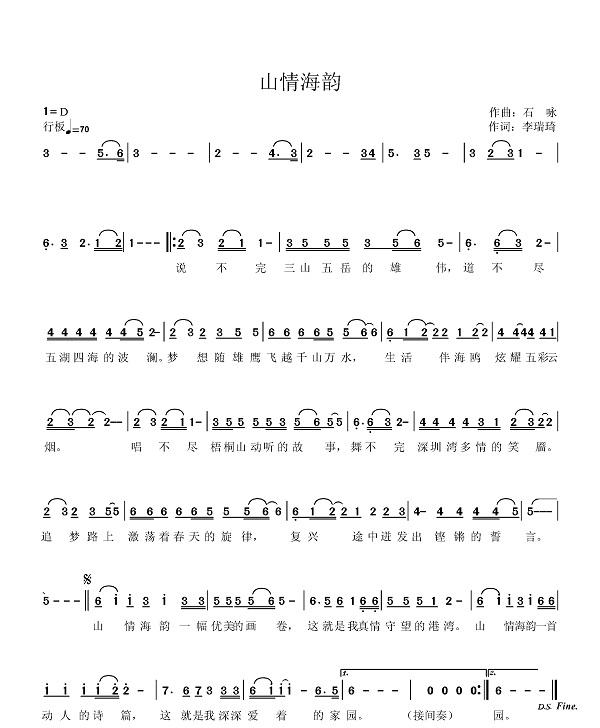 贵州作曲家石咏版词曲谱